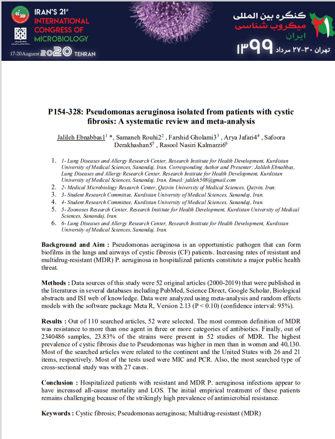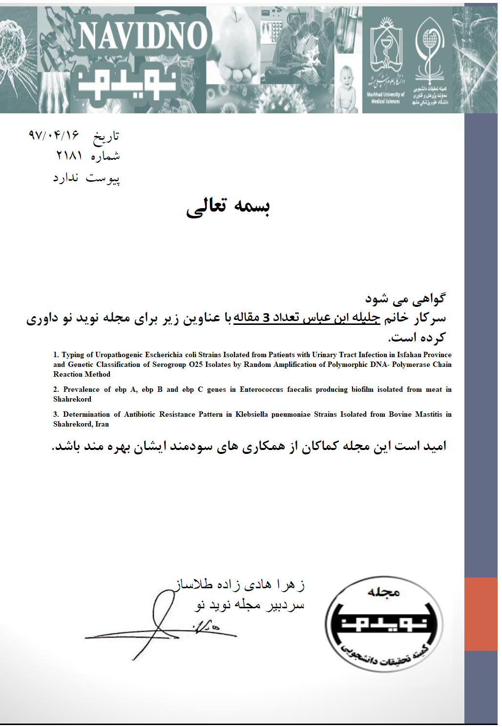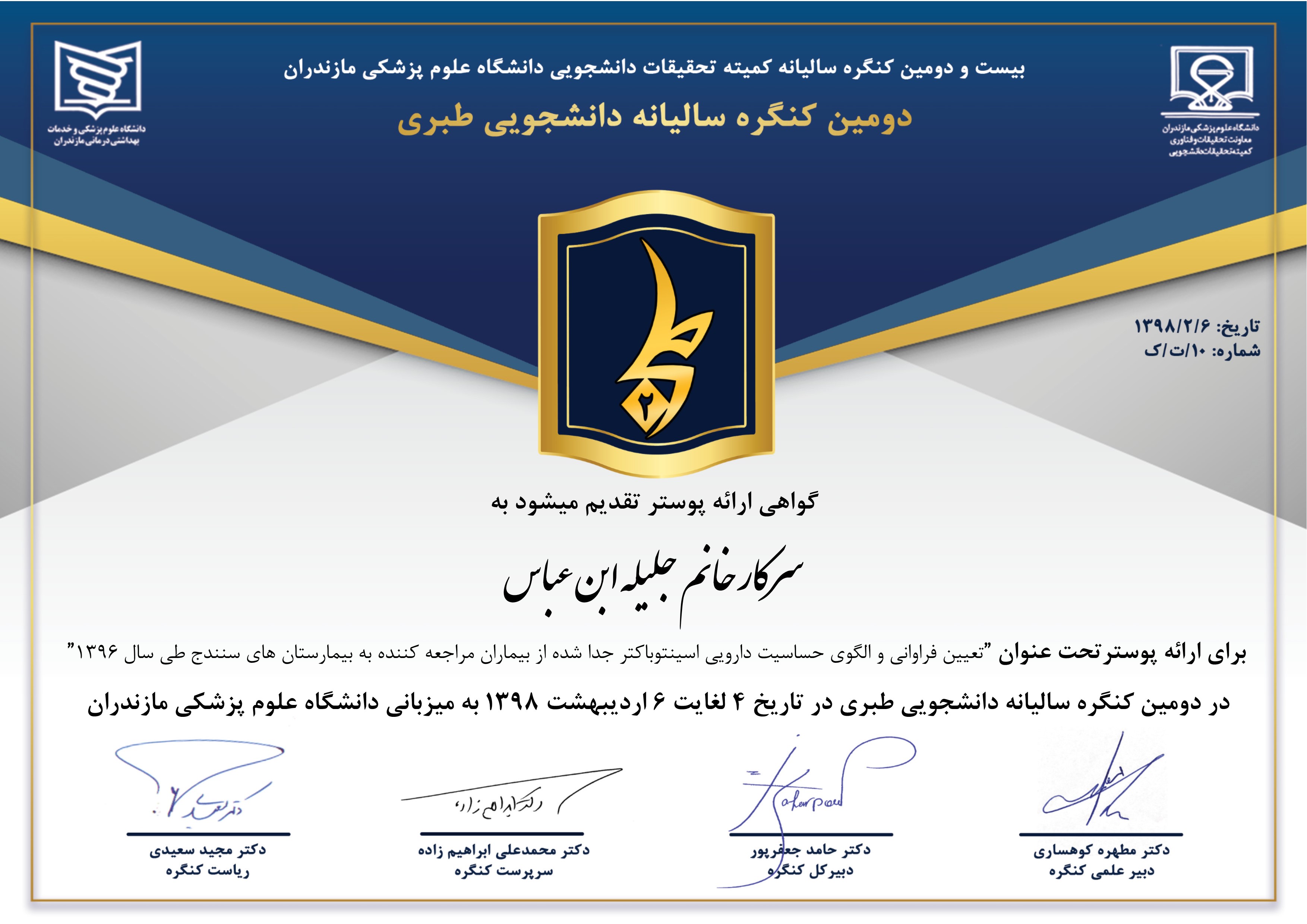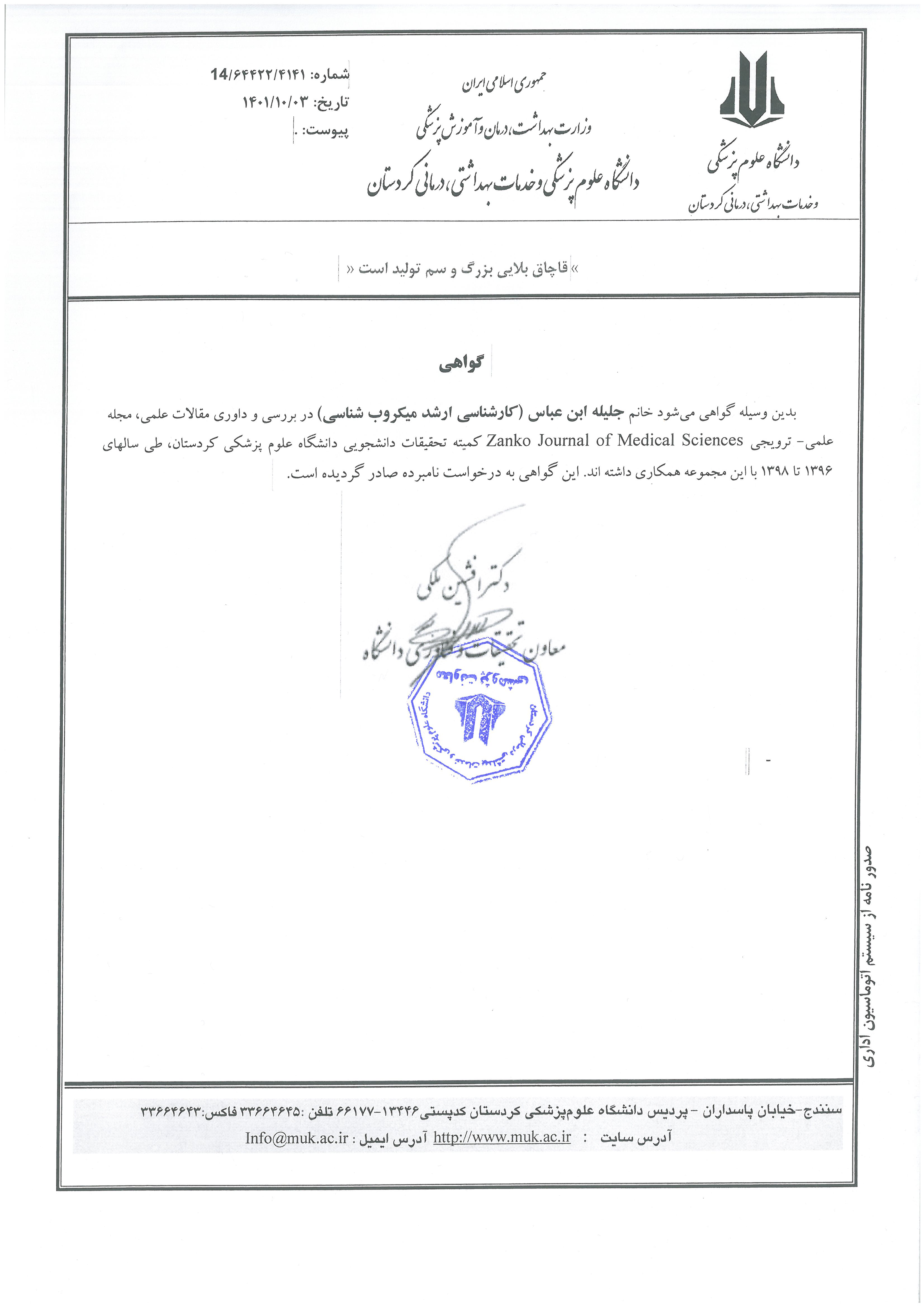 Member of the student section of the Committee for the Protection of the Effect and Rational Prescription of Antibiotics, Kurdistan University of Medical Sciences, Student Research