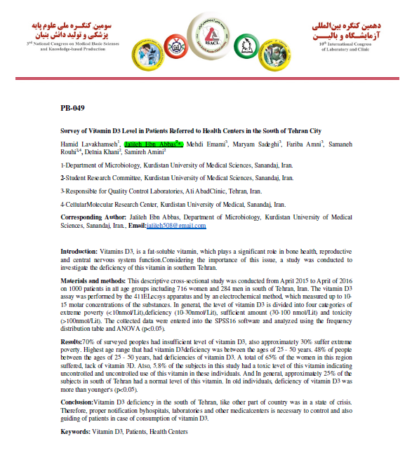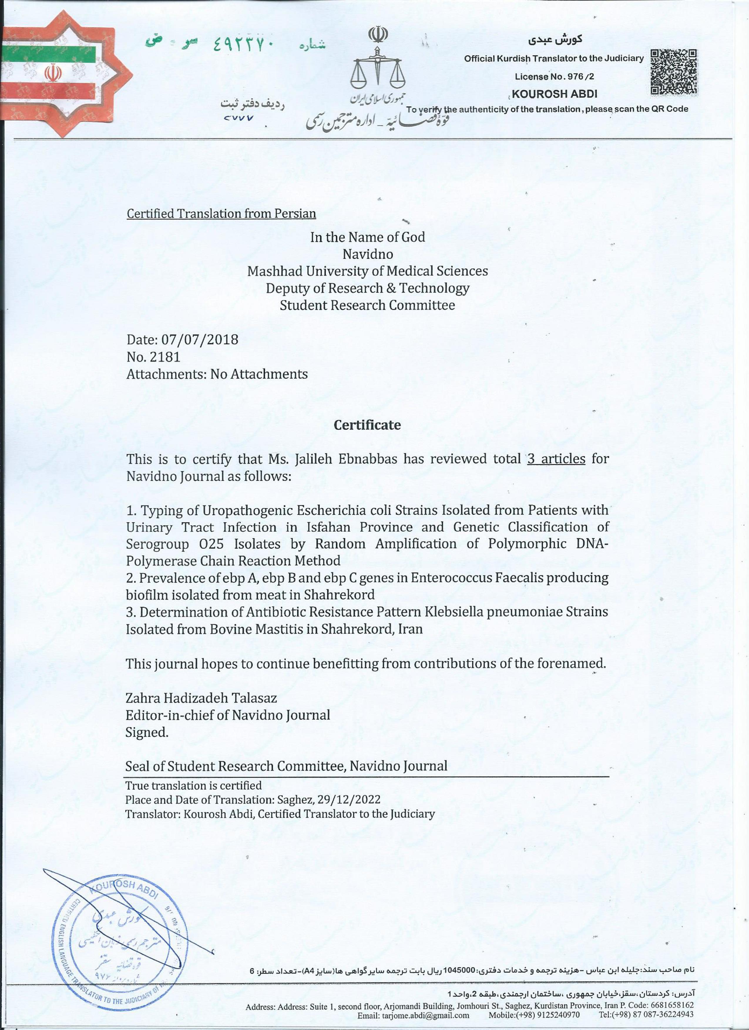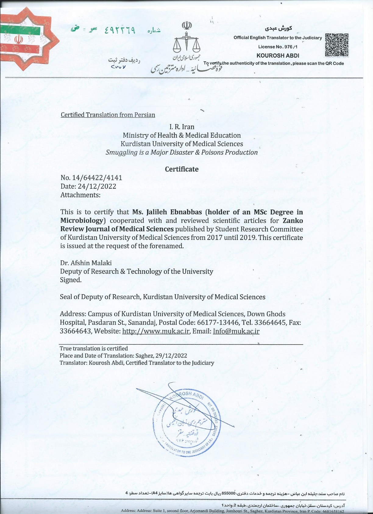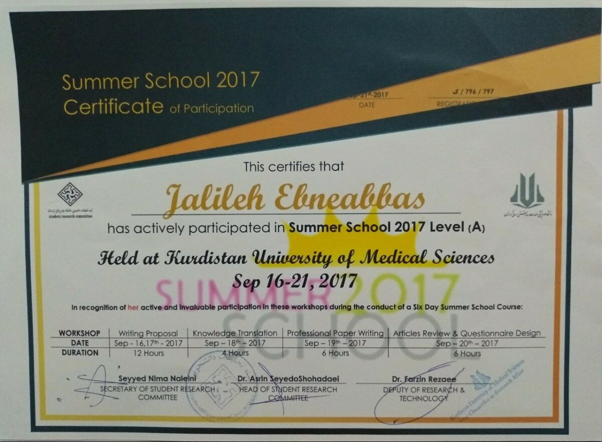 Member of the student section of the Committee for the Protection of the Effect and Rational Prescription of Antibiotics, Kurdistan University of Medical Sciences, Student Research